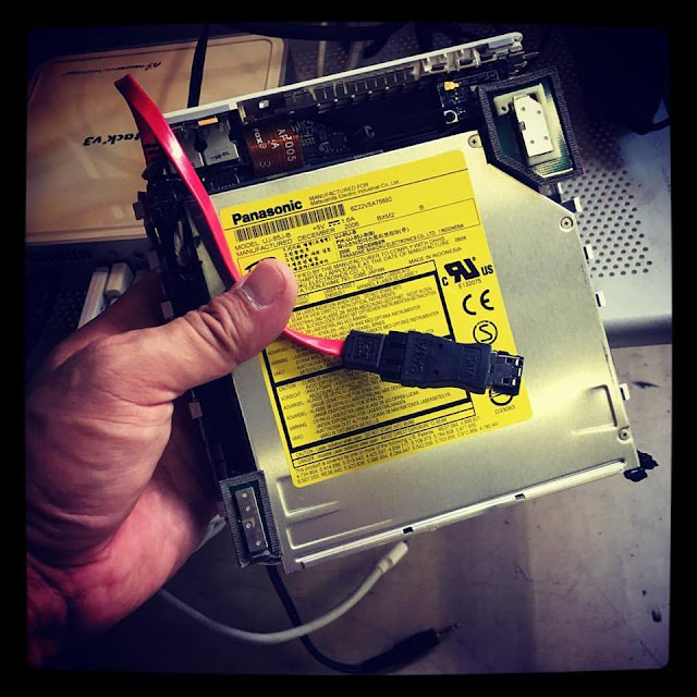 2階にDVDドライブを入れ、一階からSATAを配線で取り出す。